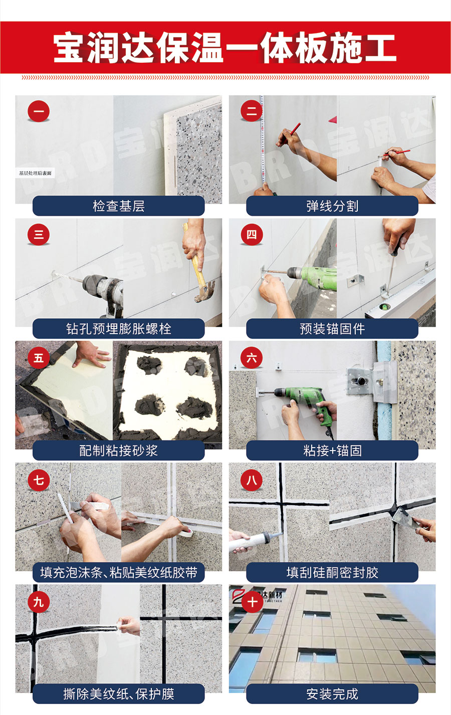 寶潤達(dá)外墻保溫一體板施工九步驟
